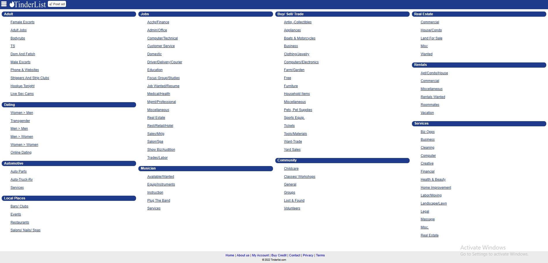 Tinderlist is also a true Backpage replacement in category listings. You can find the most suitable category for best visibility with all possible category including job posting, sale and purchase.